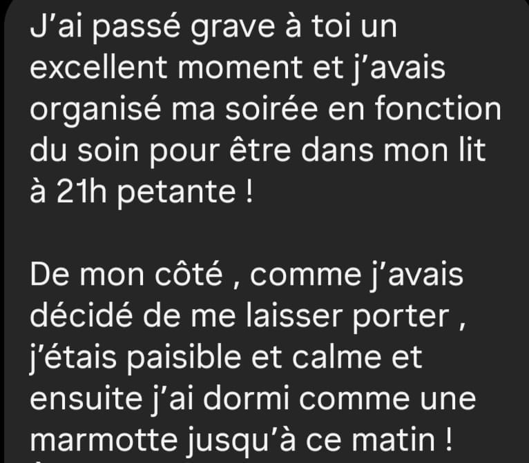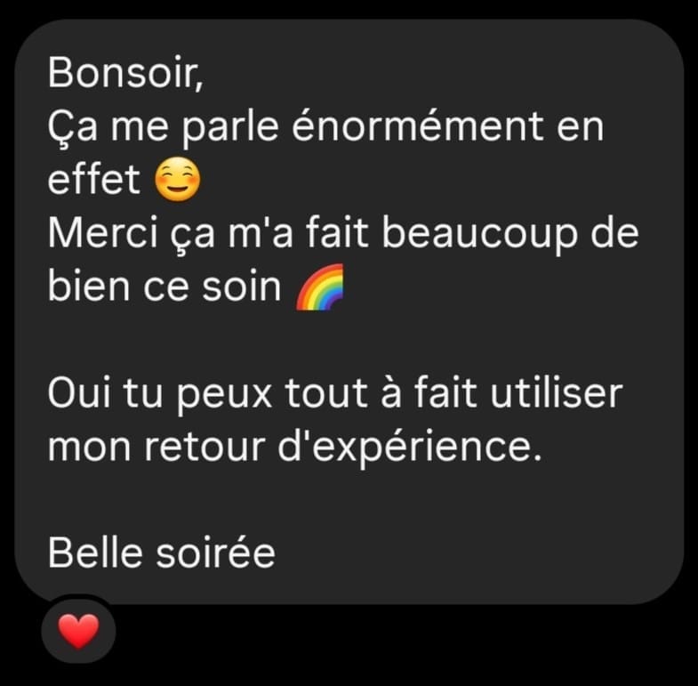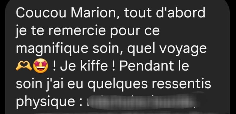 Je t'y expliquerai mes ressentis et mes perceptions, le travail énergétique effectué,