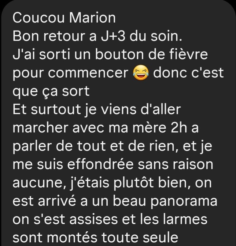 AprĂšs le soin, tu recevras donc, en plus du mail de retour collectif, un message individuel